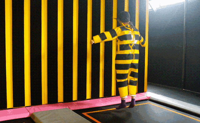 放松自己,随意的摆出一个姿势,任身体自由下落,感受下慢慢的欢乐感,再高也不怕,地面有柔软的海绵块接着你,绝对的安全放心!