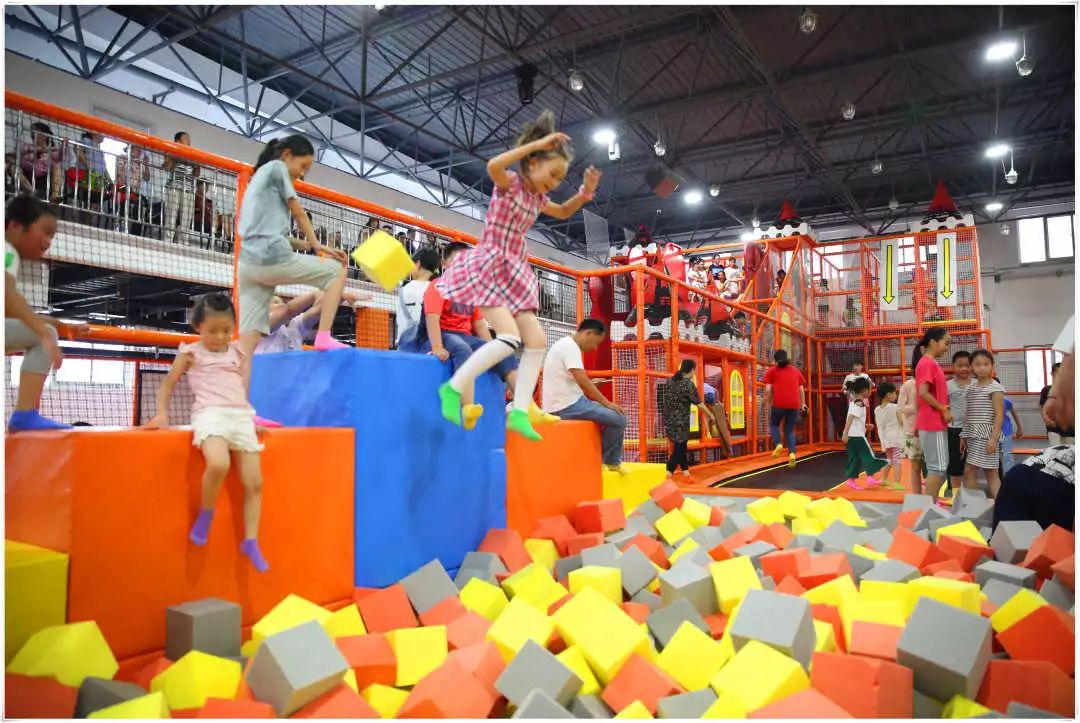 像海绵池这种好玩得劲的项目,当然要人多才好玩!一起排排站,一个个自由落体,又好玩又解压!