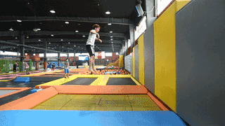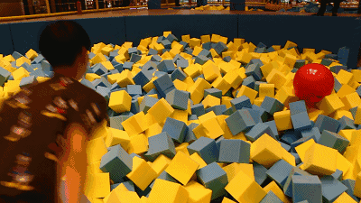 从高处跳到软绵绵的海绵池里的一瞬间