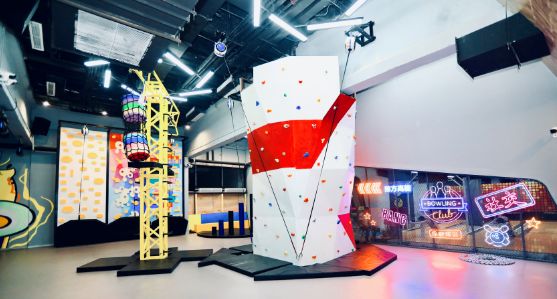 蹦床区、滑梯区、攀岩区