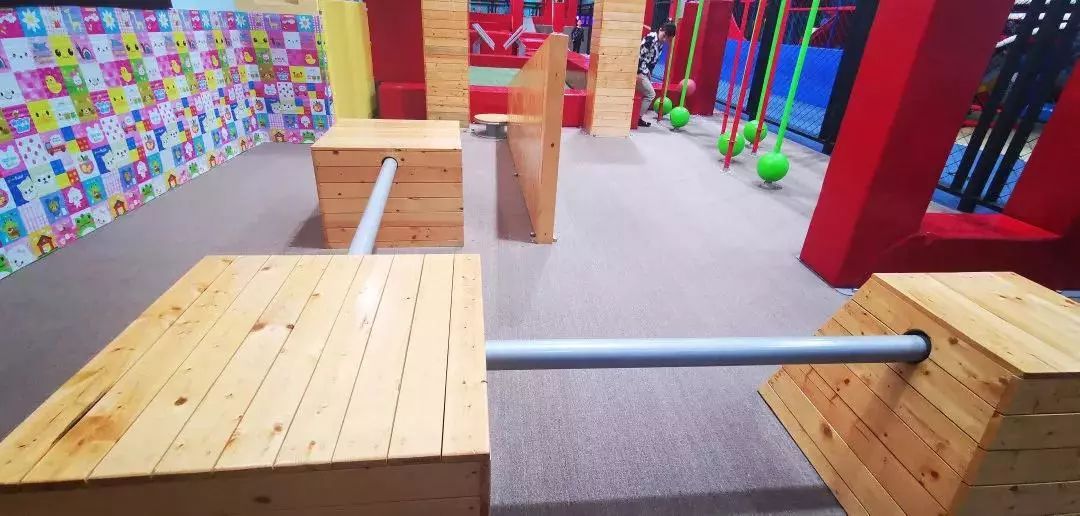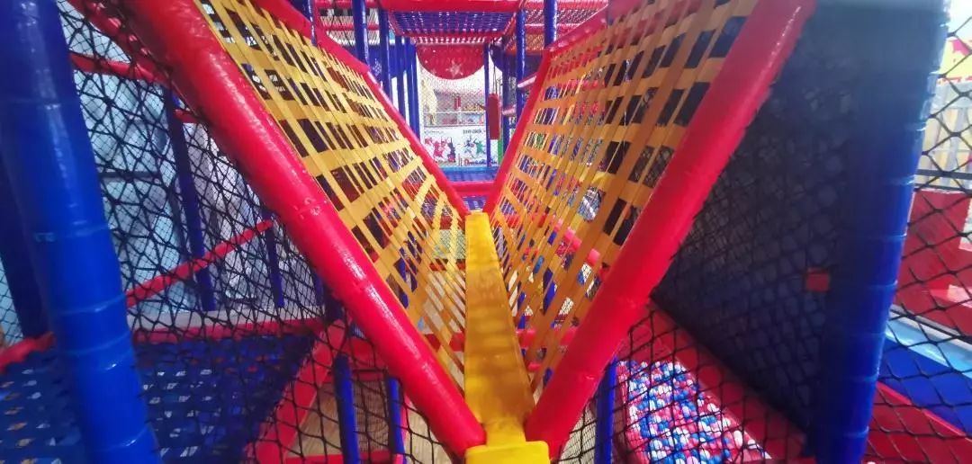 胆子一些的宝宝可以挑战这个高空爬柱,
