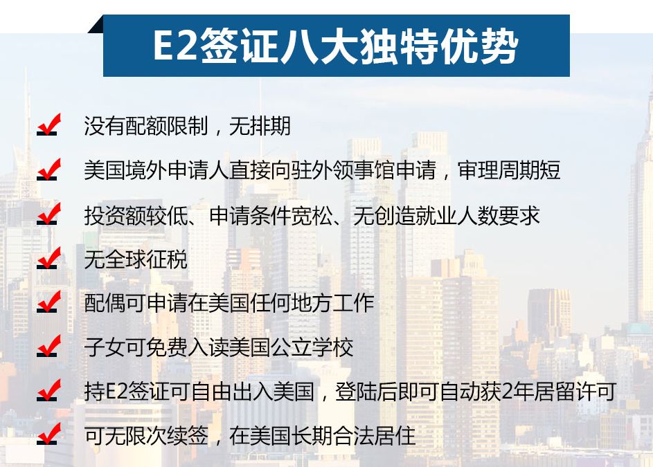 E2签证是针对与美国有双边条约(商业贸易及航海协定)的国家的公民,这些公民来美国进行相当规模的贸易,包括科技与服务等贸易,并且主要是经营美国与协定国之间的贸易,或是在美国发展和经营一个其投资的企业,或是正在美国进行相当规模的投资,就可以申请E2签证。