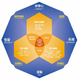 国家必修课程、中外融合课程为“VBS课程”系列一“源动力课程”、系列二“加力课程”。国家必修课程中的语文、历史、地理、政治,由中方教师采用世界先进的教学理念和方法进行整合和教学;国家课程英语、数学、科学、艺术、体育,在中方教师采用世界先进的教学理念和方法展开教学的同时,引入ESL、Drama、Science、Art、PE等国外优质课程和教材,由外教全英授课,同步进行配合教学。在课程教学中强化汉语教学与中国文化的结合,强化英语教学与英语原版书籍阅读的结合,强化数学教学与思维训练的结合。
