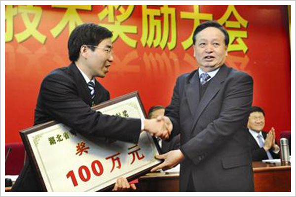 ▲武汉科技学院教授徐卫林(左一)荣获2009年度湖北省科技奖