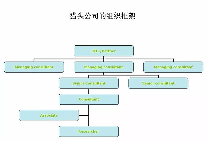 我们先来看看猎头公司内部的组织构架和分工吧!