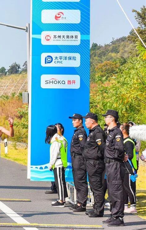 香山派出所配合度假区公安分局安保工作领导小组,在分局的指挥下,会同巡特警、治安、交警、消防、安保公司等部门,共出动600多名安保力量,以及10余辆(艘)警车(船),全力做好活动现场和赛事沿线的安保及秩序维护工作。