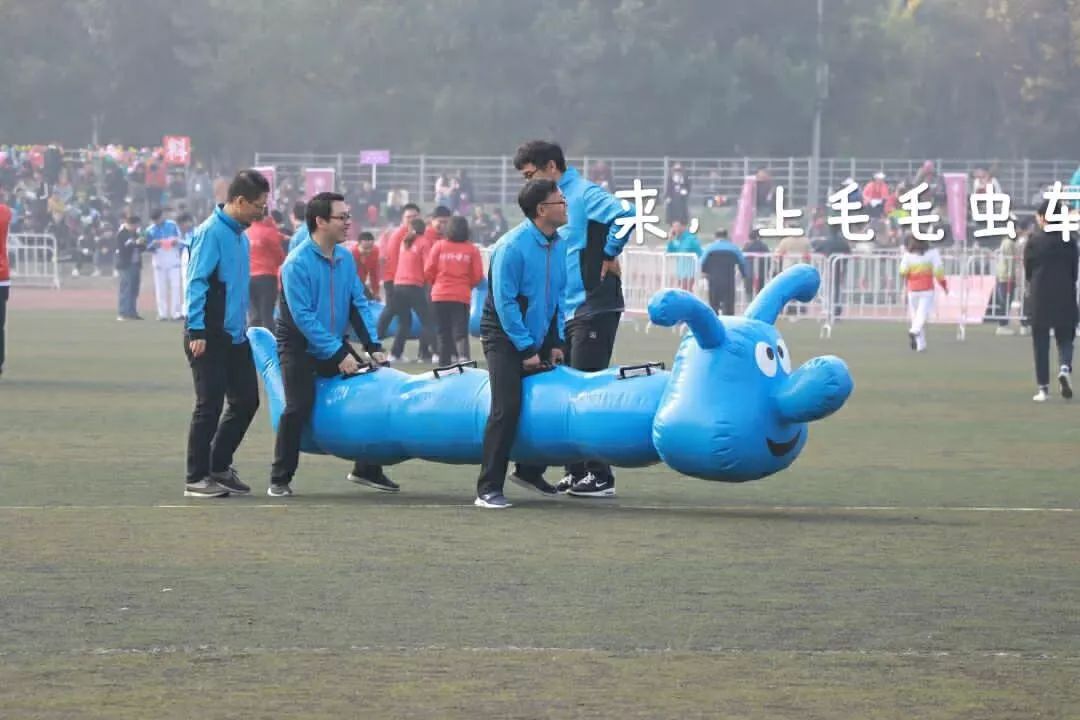 首先是“毛毛虫竞速”。一条条彩色的毛毛虫从眼前或笨拙或灵活地走过,让我们从紧张的赛事中放松了片刻。(请欣赏天津工业“欢乐谷”)