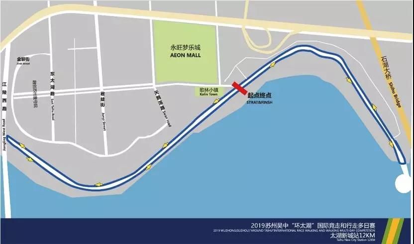 路线:吴郡路与太湖堤岸交叉口→吴郡路→吴郡路与邵昂路交叉口(折返)→吴郡路→太湖堤岸尽头(折返)→吴郡路与太湖堤岸交叉口,全程12公里。