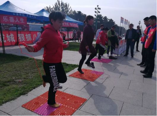 发令枪响,重阳登高活动开始!大家开始向山顶进发,与此同时,休闲广场上“体彩嘉年华”游戏活动如火如荼进行,指压板跳绳、三人拔河、海底捞月、毛毛虫竞走、平板支撑比赛等项目,集趣味性和竞赛性于一体,现场热闹非凡…