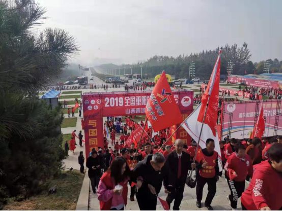 10月19日上午,2019年全国重阳登高健身大会山西晋城分会场活动在白马寺山广场隆重举行,千余名社会各界户外登山爱好者通过登高望远与祖国同乐,为祖国庆生。