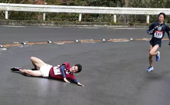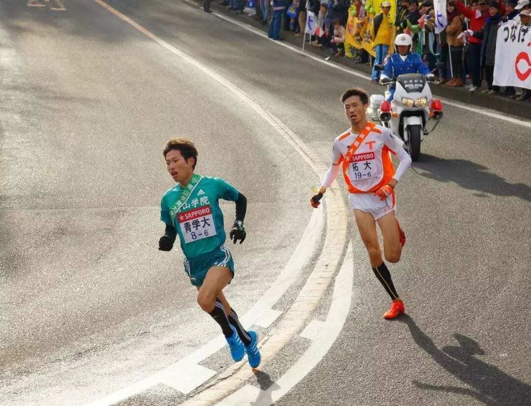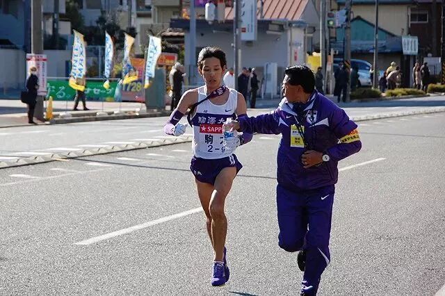 箱根驿传的补水与一般马拉松比赛的补给站补水不同,要由专门的人跟跑一段路并递上水瓶。补水的地点往往是赛程过半,选手们极度疲惫的阶段,此时接过队员手中的水,听着队友或激励或感谢或鞭策的话,可以在一定程度上调整选手们后半段的比赛状态。