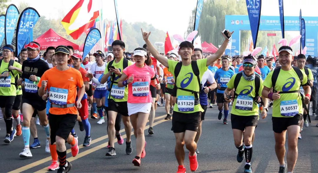 周日上午8点,2019苏州吴中环太湖国际竞走多日赛暨太湖蓝半程马拉松在苏州太湖国际会议中心鸣枪开赛,赛事规模达上万人。