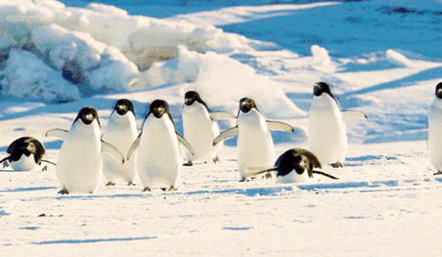 在这片静谧的海岸线上,生活着一群呆萌的精灵,它们有的披着时下最流行的雾霾蓝发色,有的头戴鲜黄色“凤冠”,走起路来一摇一摆。