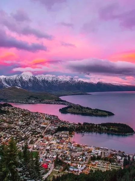 皇后镇的风景,也同样令人无法忘记。蔚蓝、淡粉、明黄,各种可爱的颜色彼此温柔晕染,共同创造出了这让人心生宁静的仙境,释放、休闲是它给每一位到访者的馈赠。