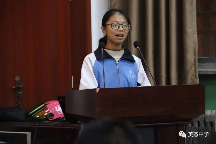 数学获奖学生代表212班闫诗韵同学发言,她告诉我们考场犹如战场,只有平时多流汗,才能考时少流泪。希望同学们在数学的学习中重视思维能力的培养,提高学习效率。