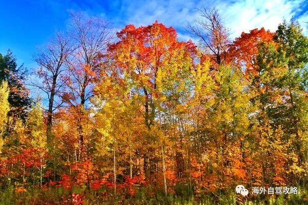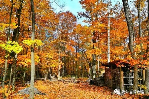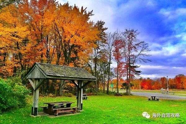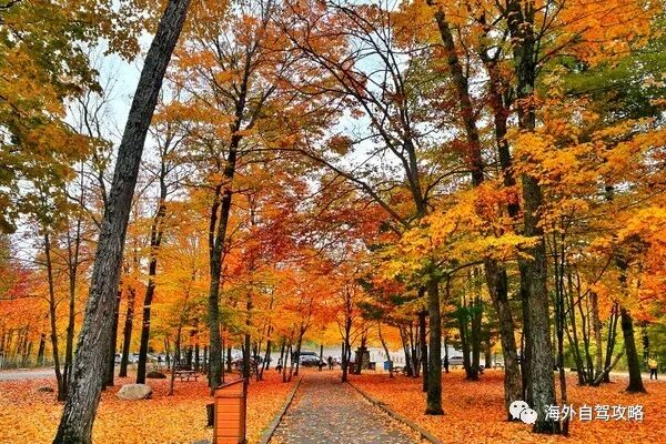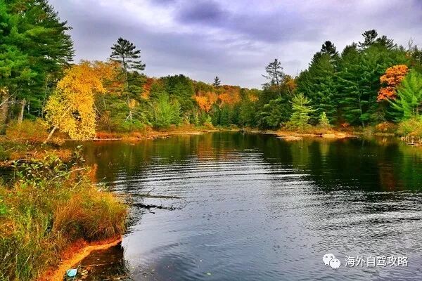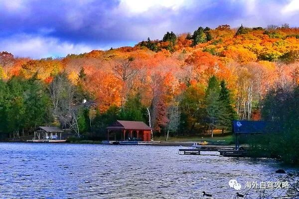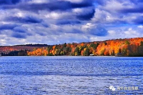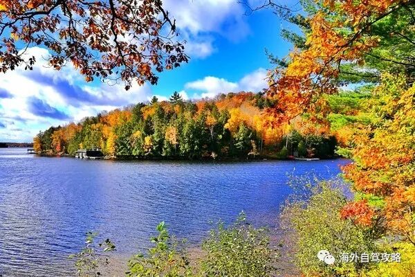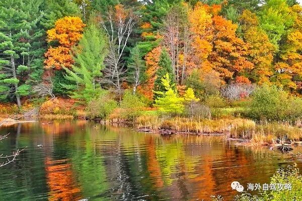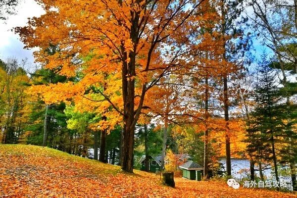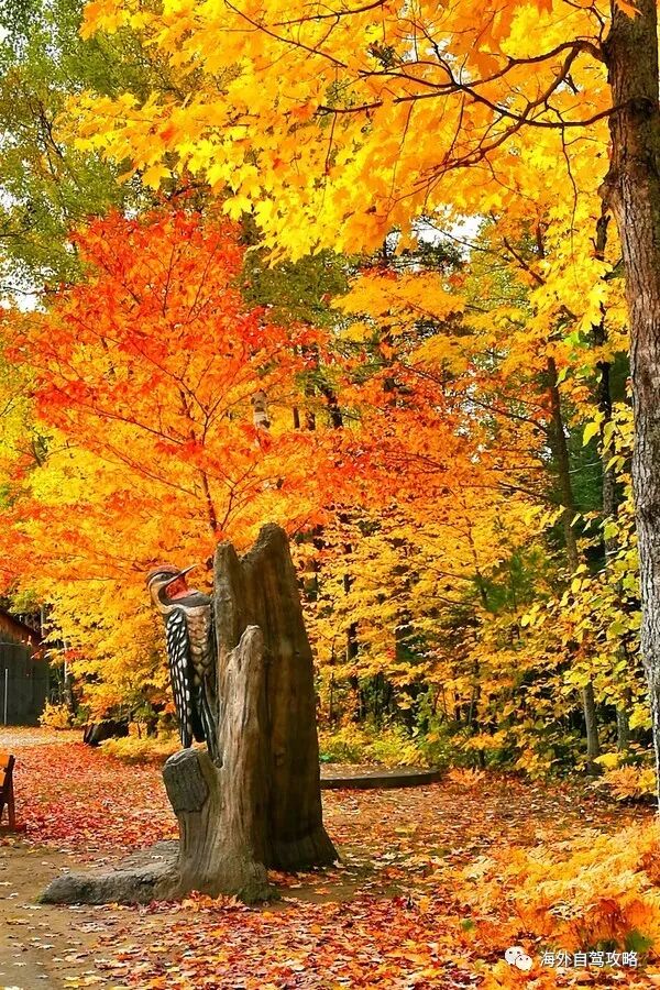 5.阿冈昆省立公园(Algonquin Provincial Park)。它是安大略省乃至加东最早最大最著名的公园,也是当地最副盛名的赏秋胜地。它的面积实在太大,超过七千六百平方公里,仅湖泊就达上千个,乍一看要全部游览一圈似乎很难。好在这里有一条穿越整个公园的60号公路,公路本身就是一条景观大道,顺着这条大道从西往东沿途全是秋景秋色,秋林夹道,秋风送爽,红叶飘丹,沿路游下来基本上就可以尽情饱览公园的壮观秋色了。