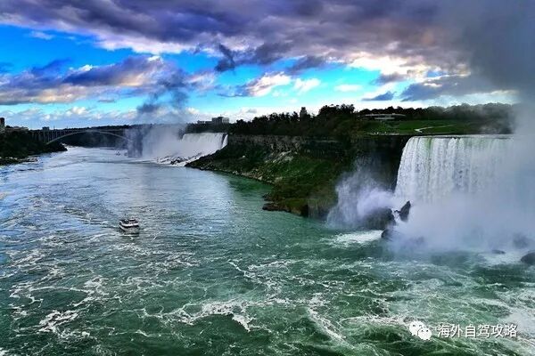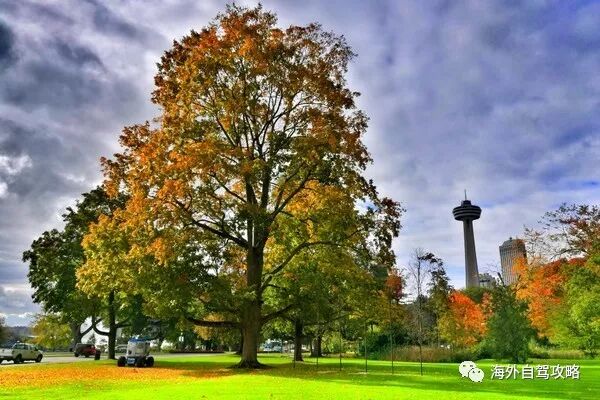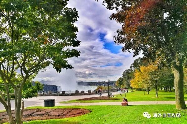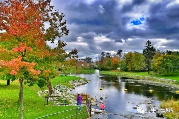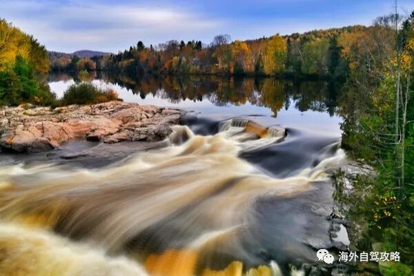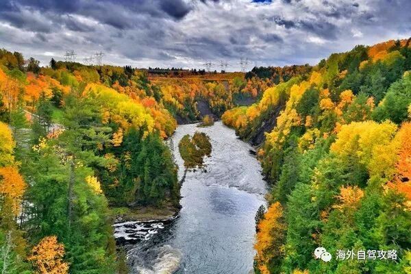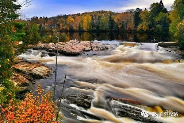 4.尼亚加拉瀑布(Niagara Falls)。它无疑是加东最出名的旅游景点,但很多人并不知道它同样也是加东出色的赏秋胜地。跨越加美两国边境的这条大瀑布,入秋后水量照样充沛,水帘飞泻,巨瀑咆哮,如同升天入地的巨龙在秋林密布的河道中横冲直撞,腾飞翻滚,惊天动地,分外壮观。加上红枫装点的尼亚加拉瀑布城、瀑布上游的瀑布小镇,以及瀑布下游安大略湖边的滨湖小镇,仿若一条五彩缤纷的珍珠项链,沿着尼亚加拉河串连成一线,熠熠生辉,引人入胜。