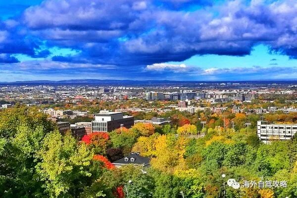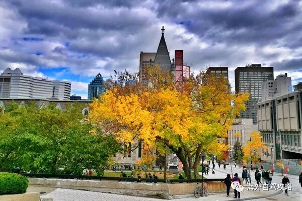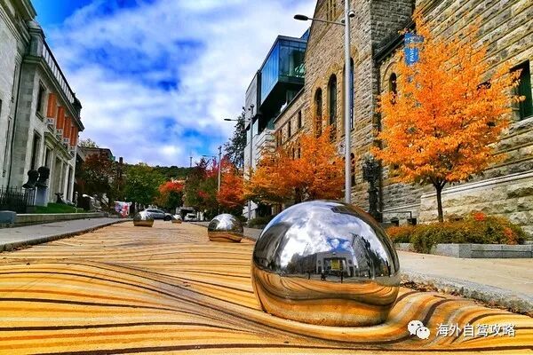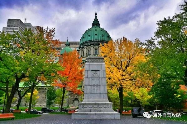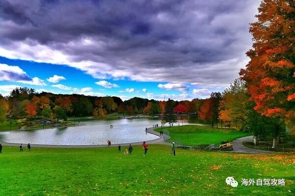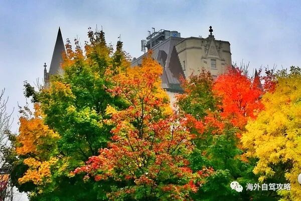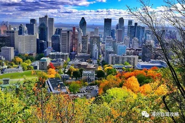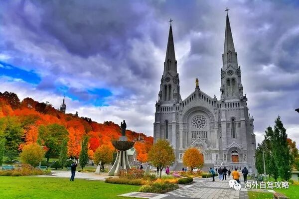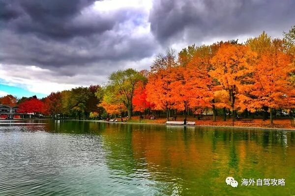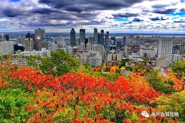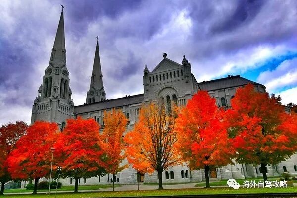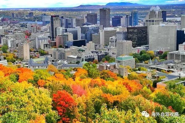 我们的首发地是蒙特利尔。蒙特利尔是加拿大第二大城市,也是全球仅次于巴黎的第二大法语城市,选择它作为我们行程的第一站却完全是因为它闻名天下的秋色。从机场出来,直接先到圣约瑟夫大教堂(St. Joseph's Oratory),这座当地地标性的建筑由于其居高临下的地理位置也使它成为城中有名的赏秋景点。站上宽敞的教堂平台,放眼周围无边秋色,一下子就把自己融入进了这座城市的秋天之中。当然,这座城市最著名的秋色非皇家山莫属。皇家山不高,却居城市正中,拾阶而上,登临送目,满城秋色尽入眼底。山上高耸的十字架是整座城市的制高点,山顶平房前面的观景台云集着来自各方的赏秋人。沿着山上步道绕山而行,山上山下,彩叶飞舞如画。不过,最吸引游人的莫过于山顶湖的秋色,一泓秋水,满目秋林,湖光粼粼,树影婆娑,真是美不胜收。最后,步行来到到山下秋色满园的麦吉尔大学,顺着皮尔街(Peel St.)慢步,一路可顺序游览蒙特利尔老城的几处主要景点,诸如美术馆、建筑博物馆、中央火车站、圣母世界之后主教座堂、唐人街、科学中心、会议中心、市政厅、老港码头、钟塔等等。每处景点无不包裹在浓浓的秋意之中。蒙特利尔无疑开启了我们加东赏秋好兆头。