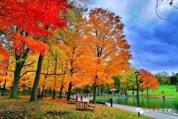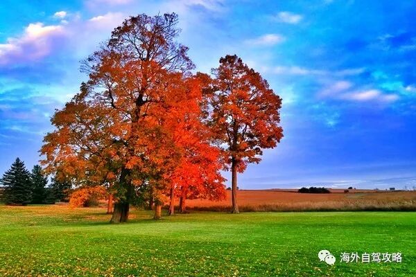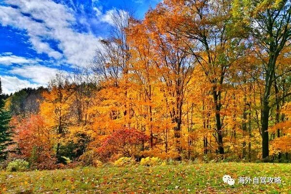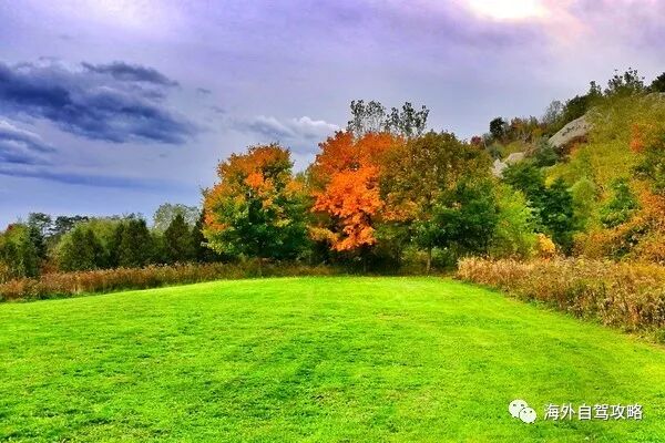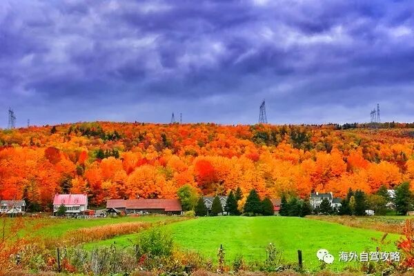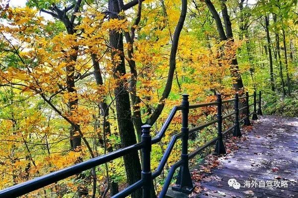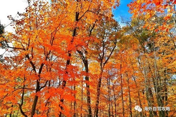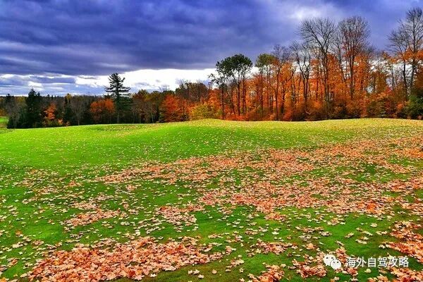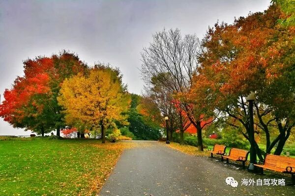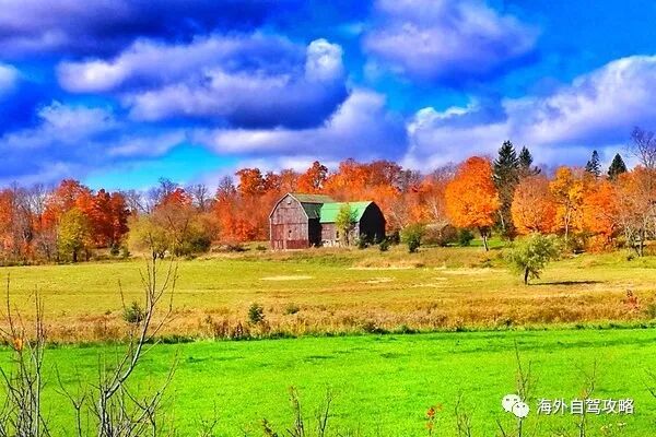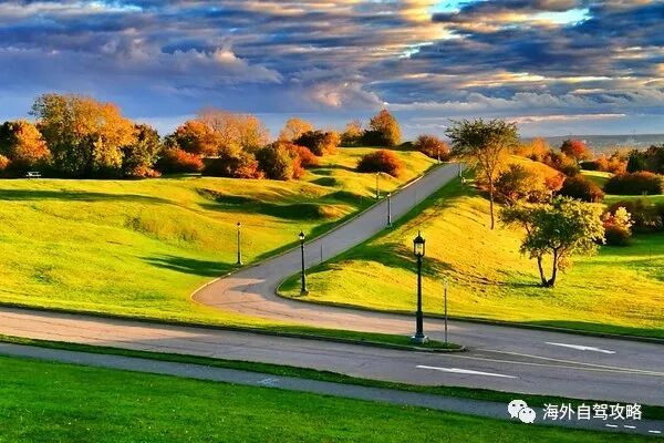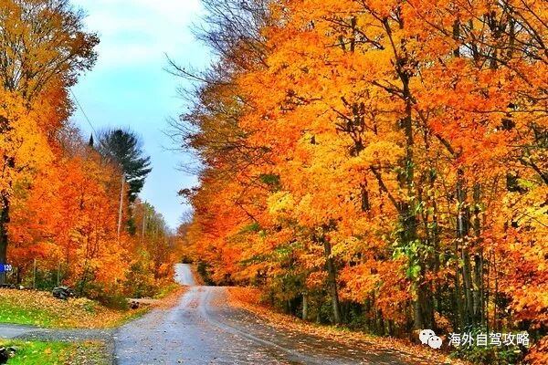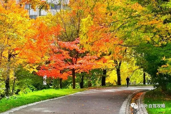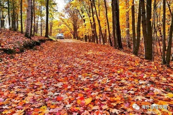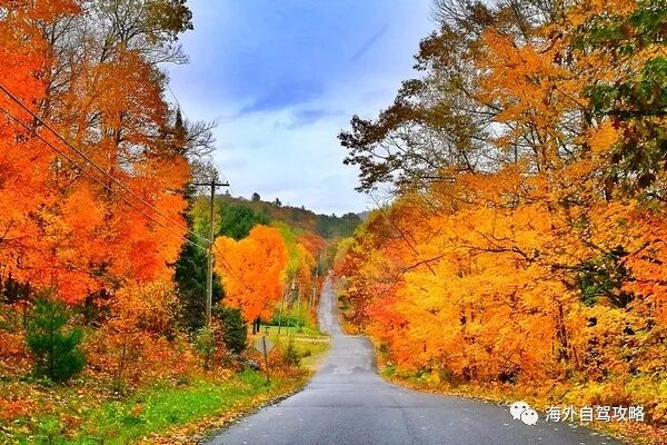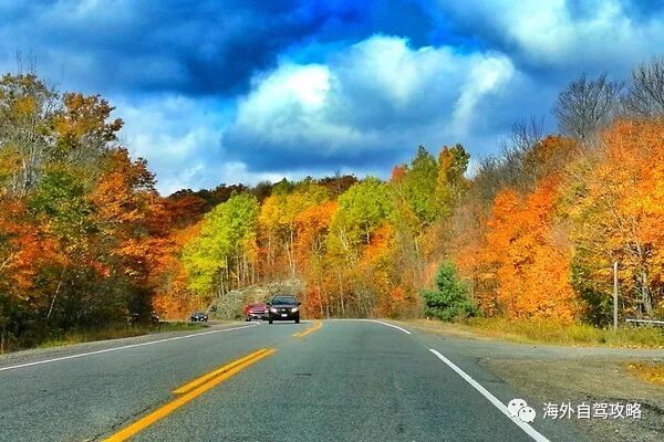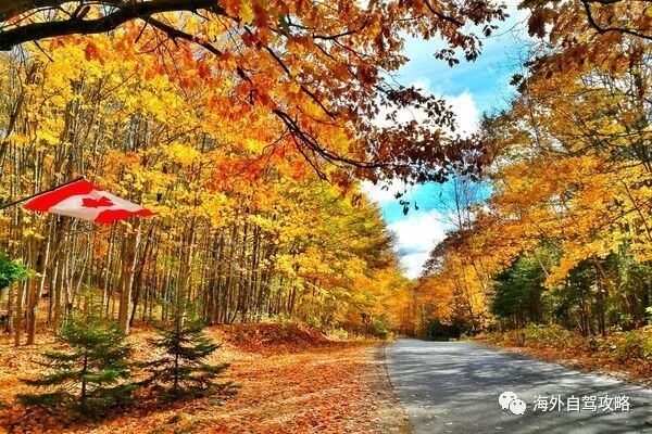 1.枫叶大道(Maple Road)。这条大道实际上并不止一条大道,它是由几条公路串连而成。连接安大略(Ontario)和魁北克两省之间的40号、407号、417号等几条公路彩林密布,枫叶茂盛,尤其是以南起多伦多,北至魁北克的这段全长约800公里的公路,一路穿越江河湖海、山丘峡谷、低陆平原、草原牧场,十月的秋色将沿线串连成了一条条色彩斑斓的锦绣大道,因此被大家并称为枫叶大道。