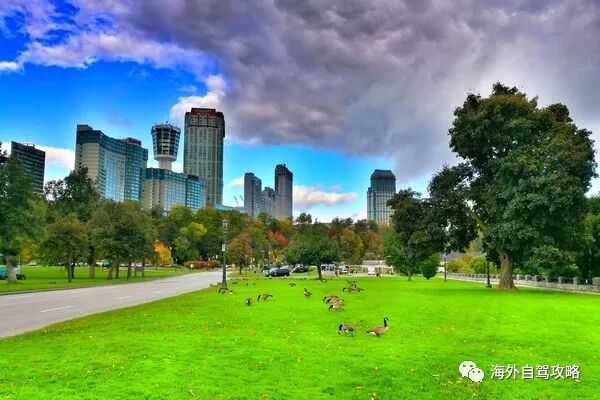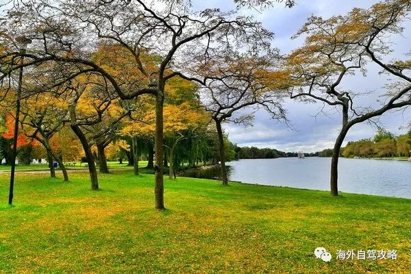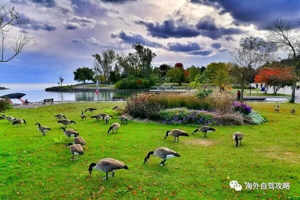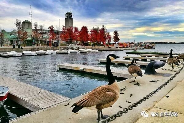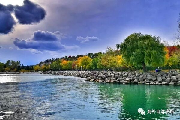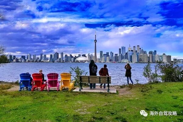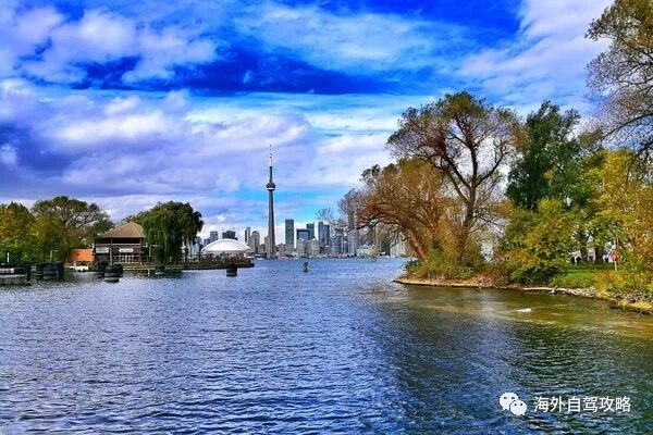 最后我们来到加拿大最大的城市多伦多,这也是我们此次加东赏秋行的重点。来看多伦多的秋天,当然首先得来与多伦多市中心隔水相望的位于安大略湖中的湖心岛。从湖滨公园的码头选择开往湖心岛的跨湖渡轮,十来分钟就到达了对岸的小岛。这里无疑是观赏多市中心全景的最佳位置。站在湖边,正面望去,美轮美奂的多市中心仿若一幅三维巨画展现在眼前,群楼林立,高塔耸天,风吹云飞,倒影婆娑。观景的人无一不会被此情此景深深地带入画中。湖心岛又叫多伦多岛,它其实有中心岛、沃德岛和阿尔冈岛共三个小岛,由小桥连为一体,本身就是一个休闲公园。岛上沙滩环绕,草坪连片,绿树成荫,鸟语花香,是一个不允许任何机动车行驶的步行岛,又称之为多市的后花园,难怪岛上所见到的多是来这里赏秋游乐野餐度假的都市人。返回市中心后,又去加拿大塔、市政厅、唐人街、多伦多大学等处走了一圈,虽是故地重游,但秋风秋景,自有另一番秋意包涵其中。