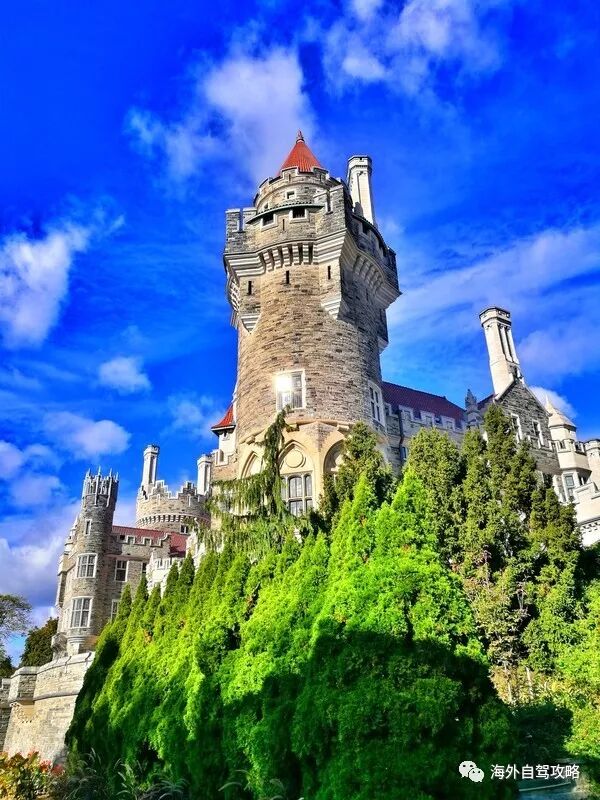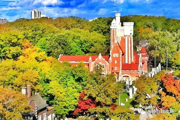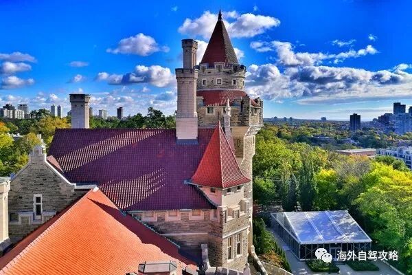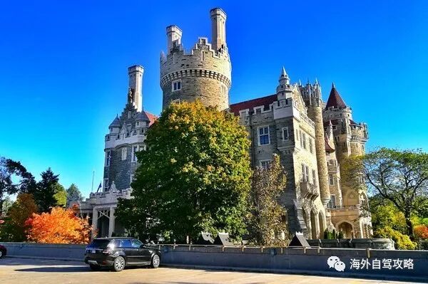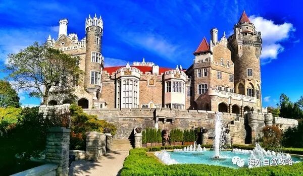 多市赏秋之地多是旧时相识,但其中有两处特别值得一提。一处人文胜地——卡萨罗马城堡(Casa Loma Castle),一处自然胜景——士嘉堡悬崖公园(Scarborough Bluffers Park)。卡萨罗马城堡是加拿大现存最好最大的古城堡,城堡占地庞大,有近百间房间,其中包括一个规模很大的马厩、一条长达270米的幽深隧道以及一座两万多平米的喷泉花园,属典型的中世纪哥特式风格。城堡始建于1911年,主人为当年富甲一方的北美超级富豪亨利.佩雷特爵士,城堡造型大方气派,室内装修高贵典雅,显尽当年奢侈豪华之极,一百多年前的城堡就已经釆用了包括电梯、电话、中央供暖、花洒淋浴等当时最先进最时髦的家居设备,可谓占尽当年风气之先。沿着城堡塔楼的螺旋形楼梯登上塔顶天台,可以纵情饱览多市中心的无穷秋色。想当年,这座城堡也曾经是多市中心的制高点。