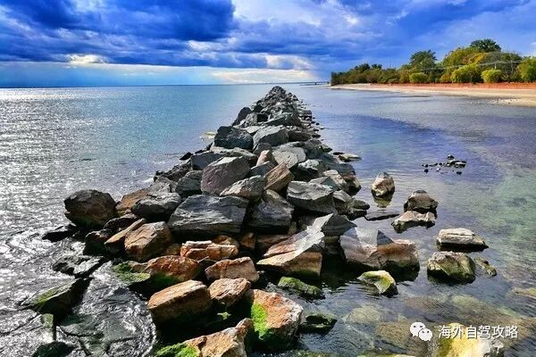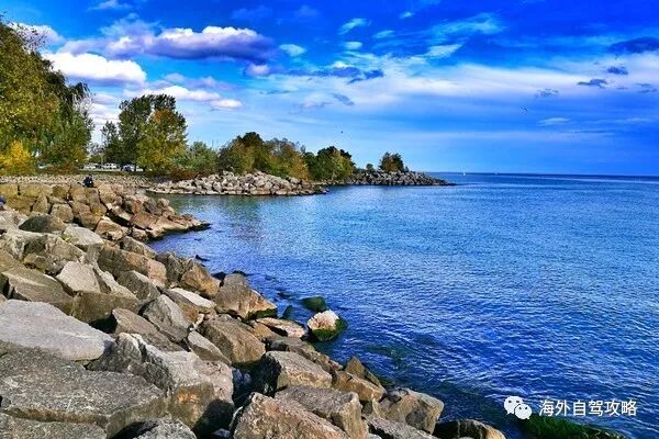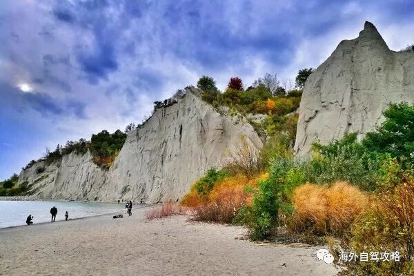 从多市中心往东北方向驱车约一小时就会到达安大略湖边的士嘉堡悬崖公园,悬崖公园与紧靠旁边的新月公园、高地公园、罗塞塔花园和博奇蒙特公园等一系列公园连成一片,一起组成了安大略湖畔最大的休闲公园区,而悬崖公园无疑属于其中人气最旺和景色最佳的。一到公园,立马就被这里的秋色美景所吸引。一湖澄海,漫天碧透,秋水连波,秋光明媚,湖边沙滩环绕,沿岸悬崖高耸,好一幅湖光山色美景图。更美的是那铺满悬崖左右两旁山坡的红枫秋林,层层叠彩,处处缤纷,争奇斗妍,满目生辉,睹此美景,仿佛置身在一片锦绣天地之中。我们此次加东赏秋之行又何尝不是如此呢。一路秋风,一带秋水;一道秋林,一片秋色;万里金秋,千里之行;人生之旅,夫复何求。