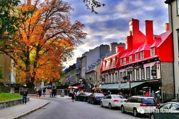 次日清晨,我们驱车前住魁北克。一上40号公路,沿线两旁的红叶枫林飘光流彩,扑面而来,立马让人感受到了枫叶大道的无穷魅力。一路北上,两目尽秋,大地披彩,群峦竞秀,色彩缤纷,层出不穷,真是让人目不睱接。眼花瞭乱之中,不知不觉就来到了圣安妮峡谷。在辽阔宽广的圣劳伦斯河流域,圣安妮峡谷无疑只属于那种袖珍形的小景点。进入公园步行不远就来到峡口,踏上横跨峡谷的小桥马上就将峡谷风光尽收眼底。只见两岸绝壁夹峙着细长的河谷,谷底飞瀑湍流,激情奔腾。远处层峦叠嶂,眼前丛林拥簇,秋天的画笔早已将峡谷上下渲染成了一片五光十色的出彩天地。峡谷外面不远坐落着分外宁静的圣安妮小镇,一条狭窄的小街静卧山角,而山上早已彩枫满林,肃穆高大的圣母大教堂在一片秋林中显得格外雄伟,顿时夺走了所有人的目光。顺着圣劳伦斯河两岸的绝美秋色,边走边看,就来到了魁北克老城,走过古色古香情浓意绵的小尚普兰街,欣赏过气势恢宏的古堡酒店及旁边宽敞开扬的广场,最后登上秋高气爽秋意环绕的古城堡公园之巅,至此你才发现,原来魁北克乃至整个加东最美的秋天就在这里。