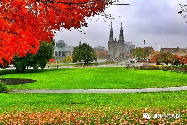 魁北克通往渥太华的公路照样是一条枫林密布的景观大道。一样的河谷风光,一样的枫林密布,照样的浮光烁金,依样的神采飞扬。稍有不同的,只是从充满着法国情调的古城来到了弥漫着英式风情的古都。的确,这座古都本来就是由一座英伦三岛风格的爱尔兰式的基督教乡镇发展而来。1832年通往安大略湖的丽都运河的开通才使它迅速成为风光一时的经济重镇,1857年英女王更将它选作加拿大的首都,华人由此干脆就直呼它为渥京。渥京与其说是一座政治都城,还不如说它是一座文化都市更恰当。来到这个城市,你会发现它无处不充斥着浓郁的文化氛围。这里有国家博物馆、国家艺术中心、国家画廊、国家人类博物馆、国家集邮博物馆、国家科技博物馆、国家自然博物馆等30多个五花八门的博物馆及50多个各种各样的艺术馆和剧院,每年还举办着大大小小形形色色的音乐节、电影节、艺术节,堪称一座名副其实的艺术之都。我们在这里除了选择性地欣赏了几座博物馆外,也去了久副盛名的渥太华国会山庄、国会大厦、圣母大教堂、皇家造币厂以及拜沃德市场,而令人印象最难忘的无疑就是丽都运河两岸那锦绣延绵秀色迷人的无比秋色了。