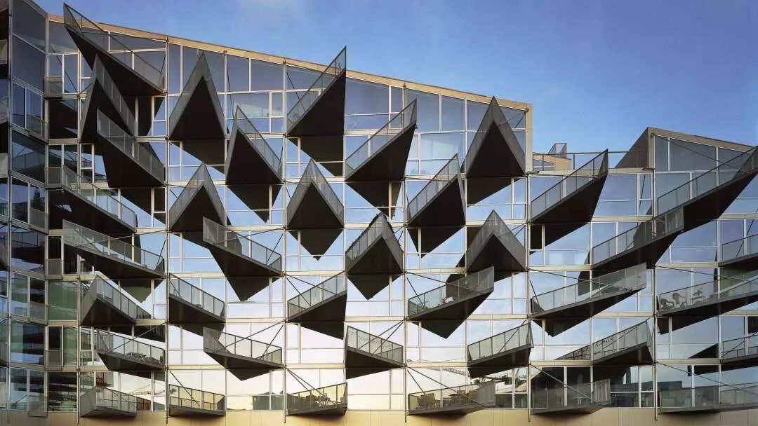 V型那栋被设计成一个阳台公寓,它的亮点在那一系列似乎在彼此对话的阳台,不像平时的阳台都朝着同一个方向。