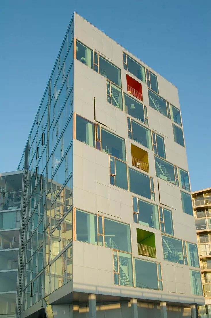 位于 ?restads 城市外沿最南部,整个大楼平面布局呈“8”字形,人们可骑车沿着露台花园从街道一直上到10楼的顶层公寓。