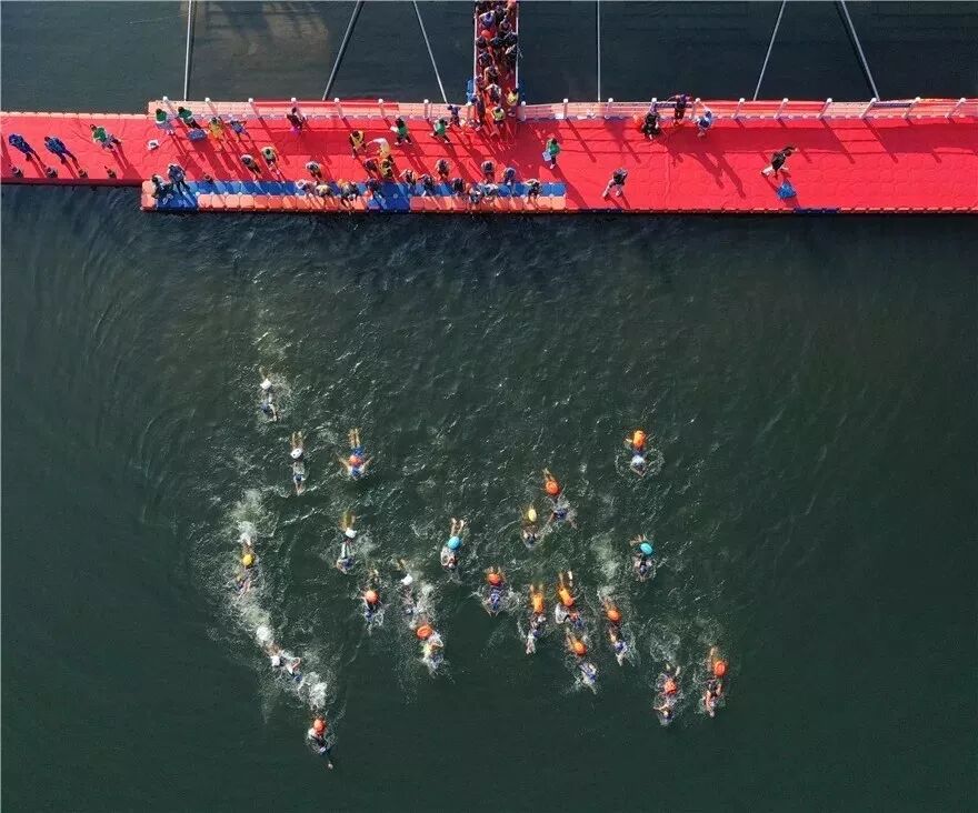 铁人三项赛是将游泳、自行车和跑步这三项历史悠久的运动结合起来而创造出的一项户外体育运动。据了解,本次竞赛共设置了游泳组、骑跑两项组、全程组、半程组和接力组五种赛事项目,参赛选手可以根据自己的能力与爱好选择不同的比赛路程。
