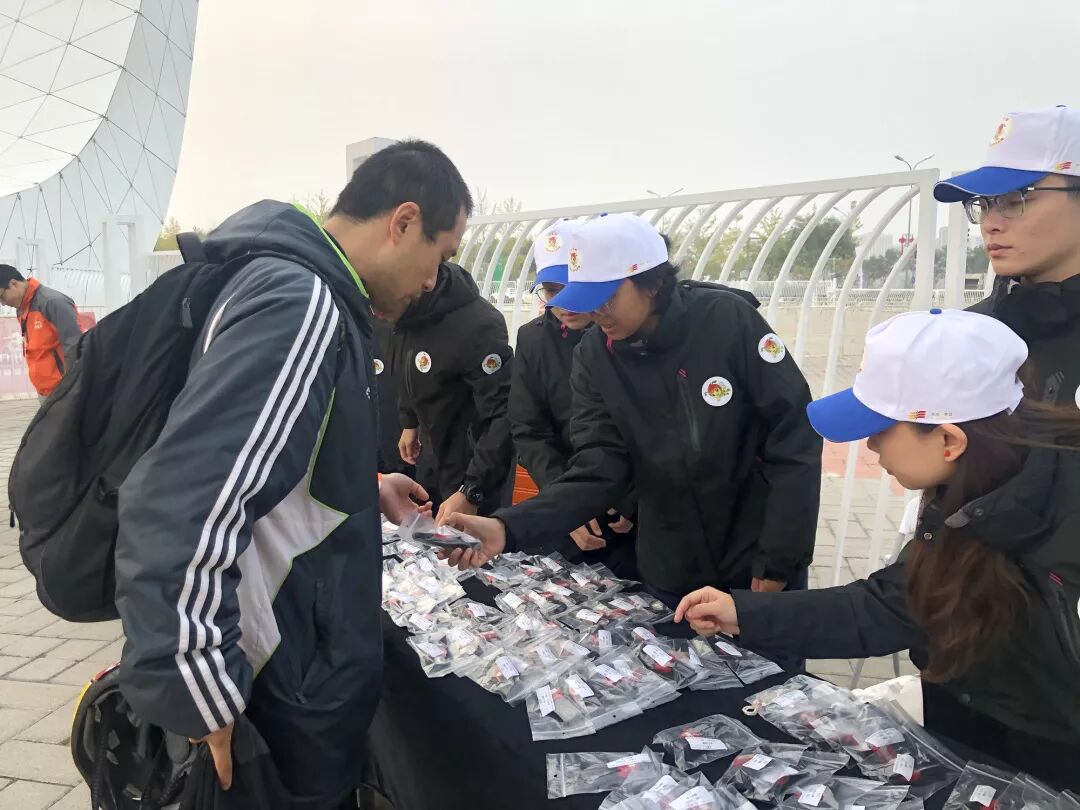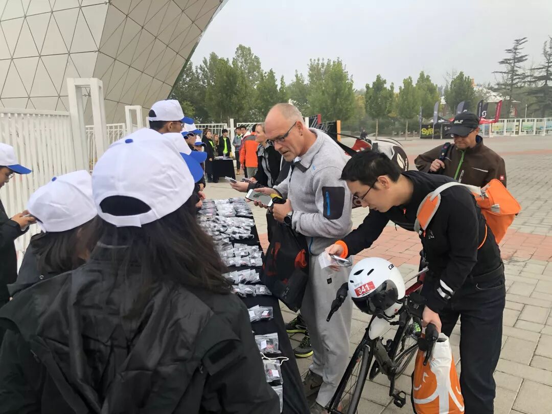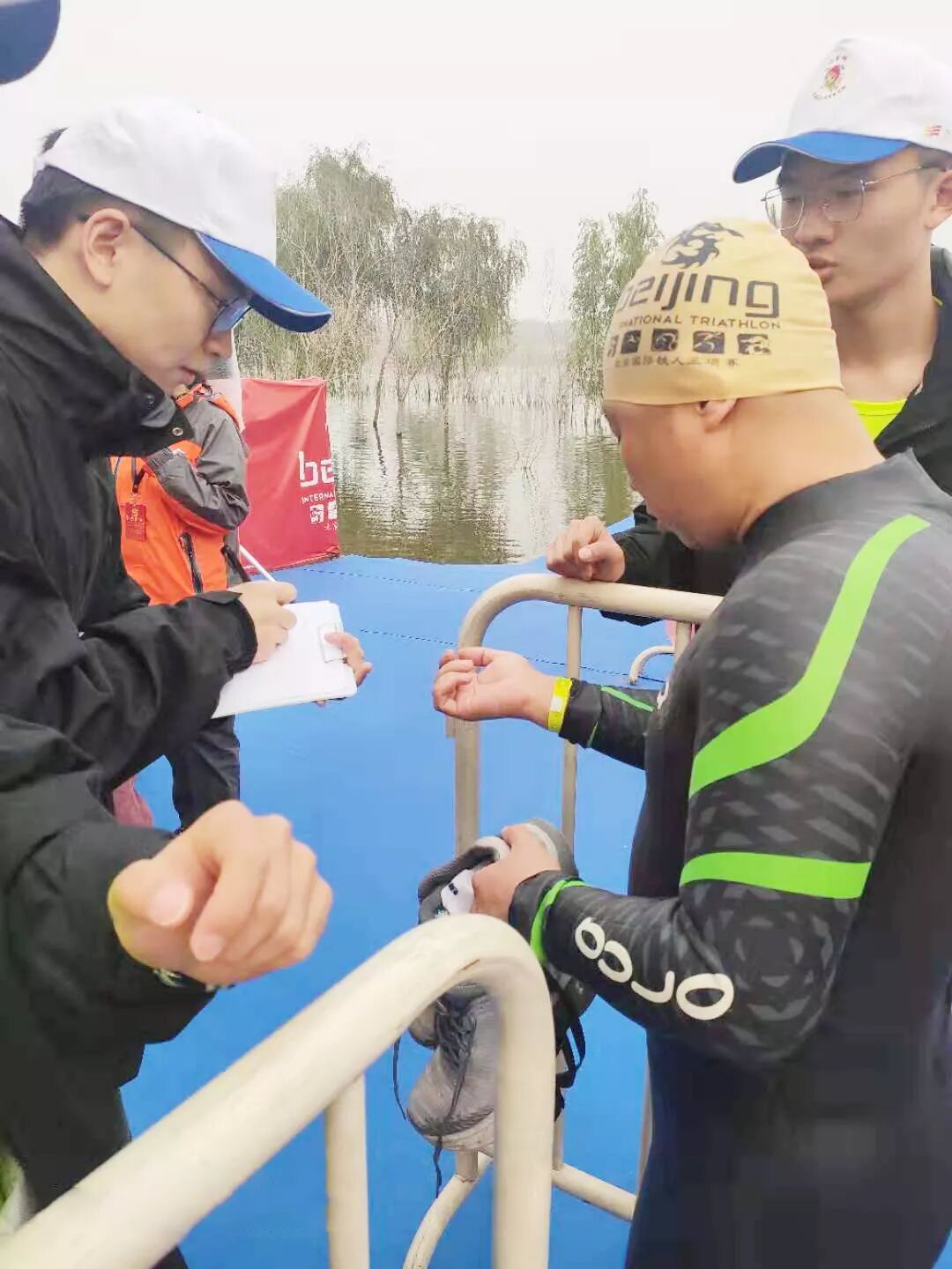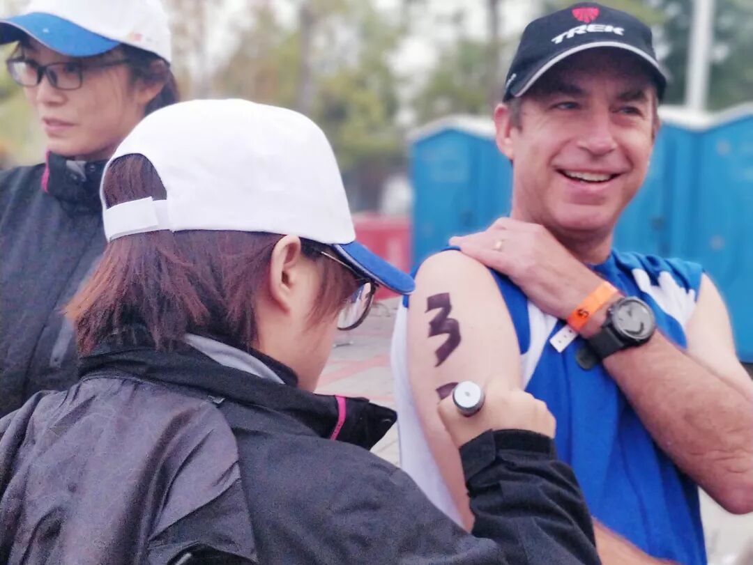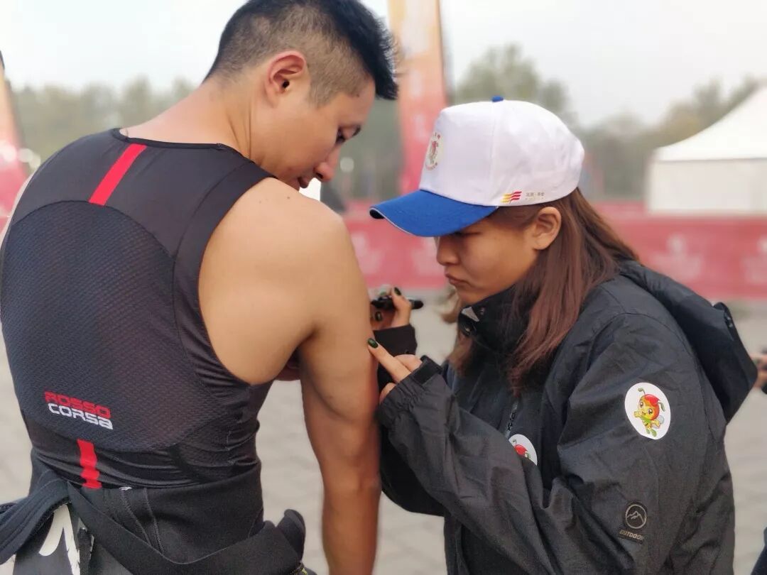 我们会提醒运动员戴好头盔,带上号码簿和芯片,帮他们在手臂写上号码,往往会得到一个微笑点头或是一句“谢谢”,志愿服务带给我大大的满足与开心。