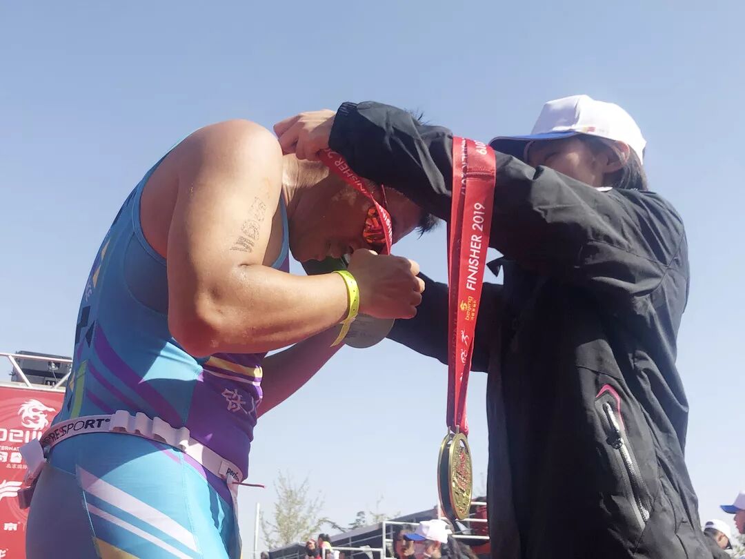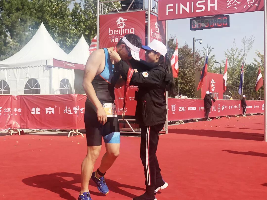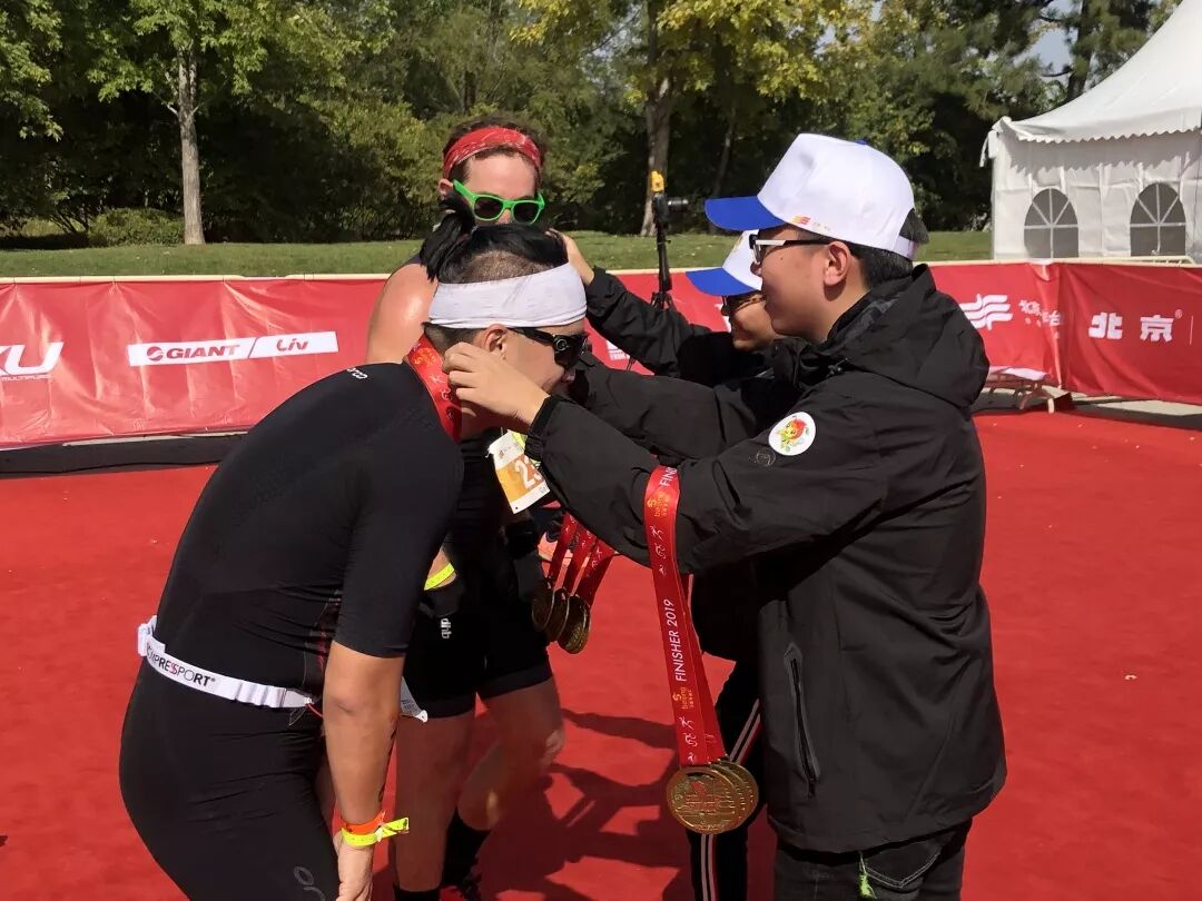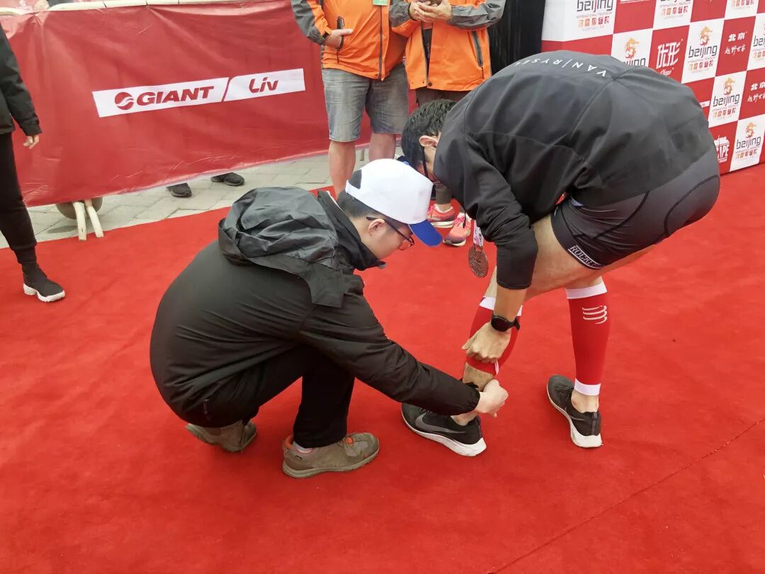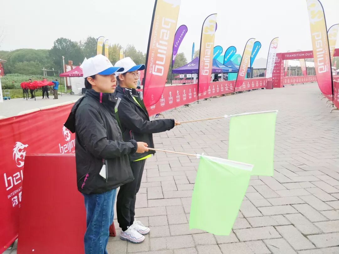 我们会提醒运动员戴好头盔,带上号码簿和芯片,帮他们在手臂写上号码,往往会得到一个微笑点头或是一句“谢谢”,志愿服务带给我大大的满足与开心。