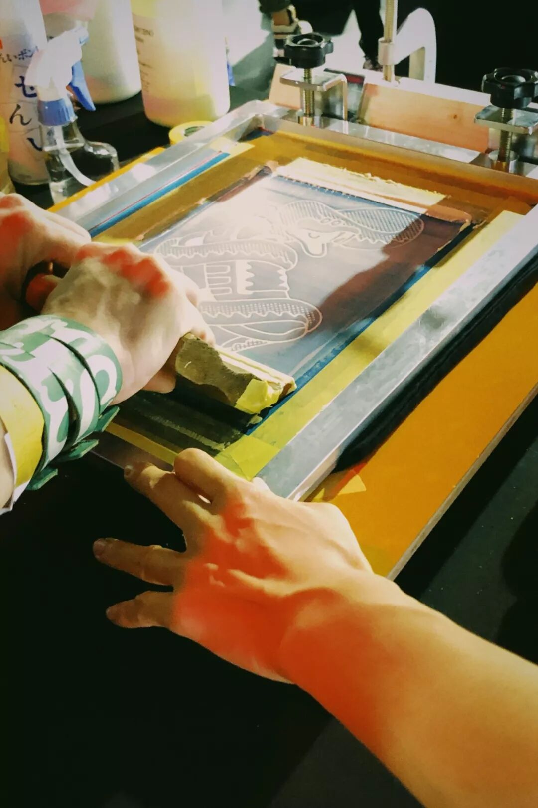 然后本人就真的上去用刮板做了人生第一个 Handmade 丝网印的图案出来 XD