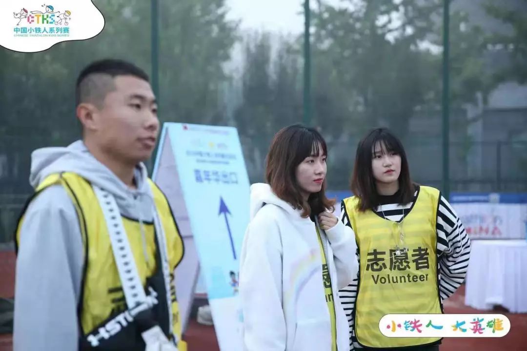 志愿者们在赛道周围引导和鼓励着小铁人们,同时也展现着他们靓丽的风采~