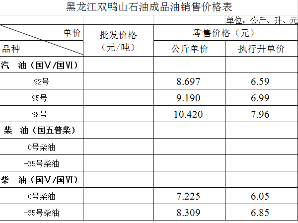 据悉,自2019年10月22日零时起对分公司所属各片区及营业室成品油销售价格进行调整,现将成品油销售价格调整如下