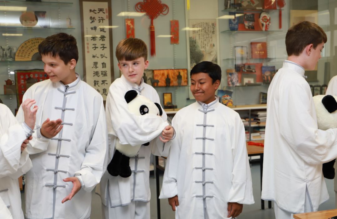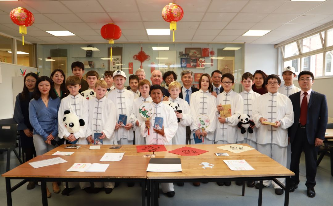 贝弗德中学校长弗里愉快地回忆了2012年时任中国国家副主席习近平访爱时到访贝弗德中学并参观孔子课堂的情景。何大使表示,孔子课堂不仅是学生们学习和了解中华文化的平台,也是增进中爱两国人民相互了解和友谊的一座桥梁。看到这么多同学喜欢和学习中文、中国文化,仿佛看到了中爱关系的美好未来。