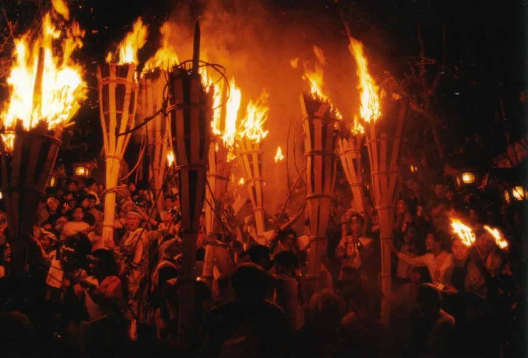 此节日的最初目的是为亡者的灵魂照亮在人间的道路,现成为京都三大奇祭之一,从18点开始,一直持续到后半夜。大型火炬树立在鞍马街道两侧,部分重达80公斤,点燃后要手持火炬同神輿(移动式神社)一起前往神社山门。火祭场面非常壮观,充满了古老时代的精神。