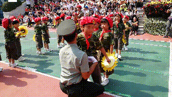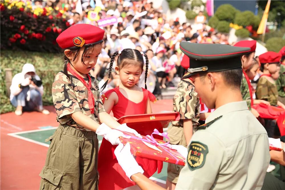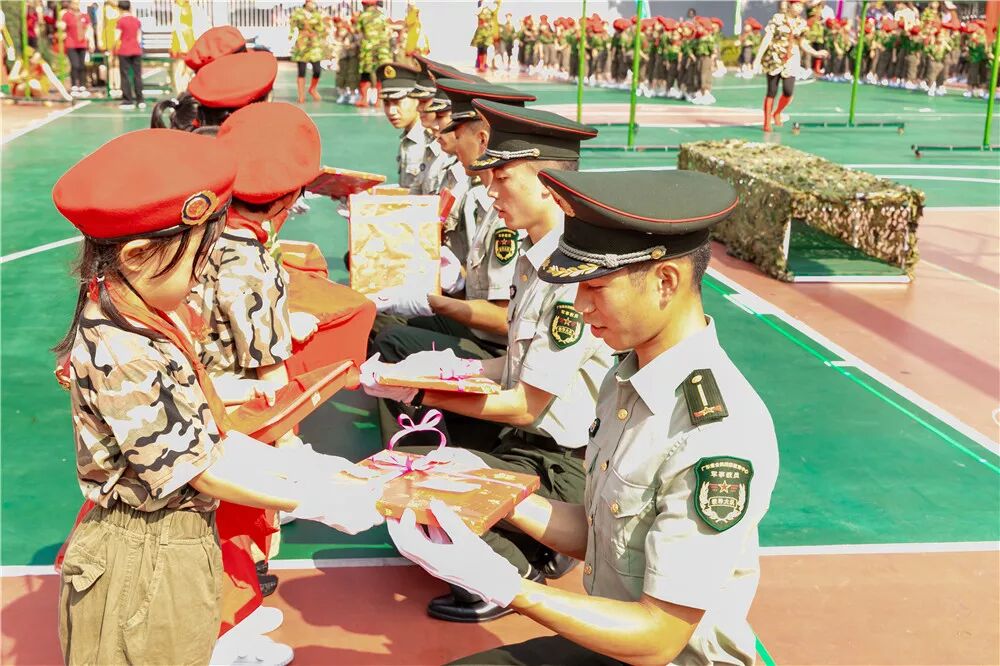 “红旗小兵”证书颁发环节、向教官赠送纪念品,与教官的深切拥抱,气氛激动而又充满感动!孩子们真实而纯粹的情感,在他们的成长画册中又画下了丰富的一笔!
