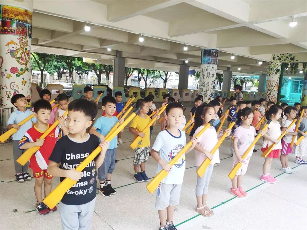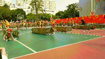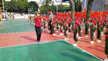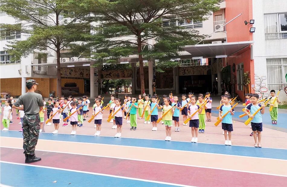 瞧,队列表演中孩子们每个动作都有板有眼,没有平日的顽皮表情,有的是一鼓作气的精神!加油,小小兵们!