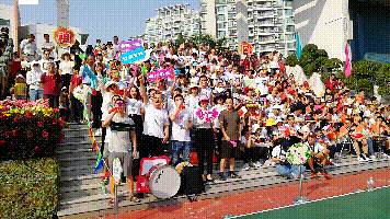 看台上坐满了激动万分的家长们,他们欢呼、呐喊,拉横幅、吹小号、锤大鼓,不停地为场上的小兵们加油、鼓劲,为小兵们送上最热烈的祝贺!爸爸妈妈把欣喜和自豪都写在了脸上!