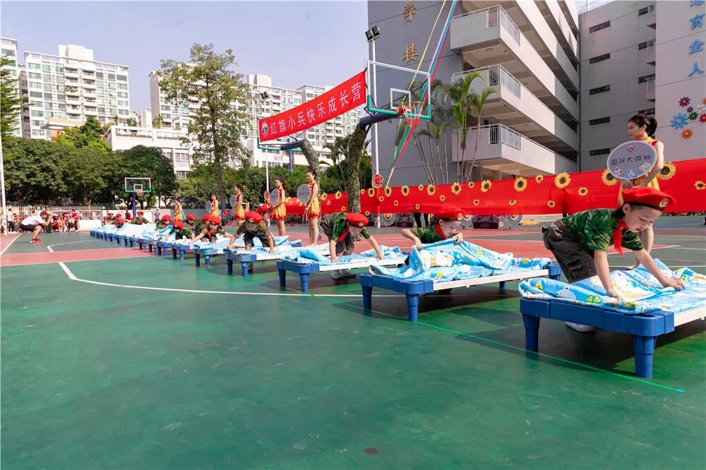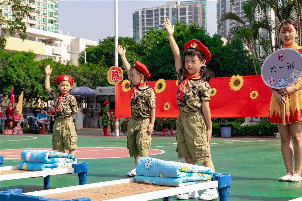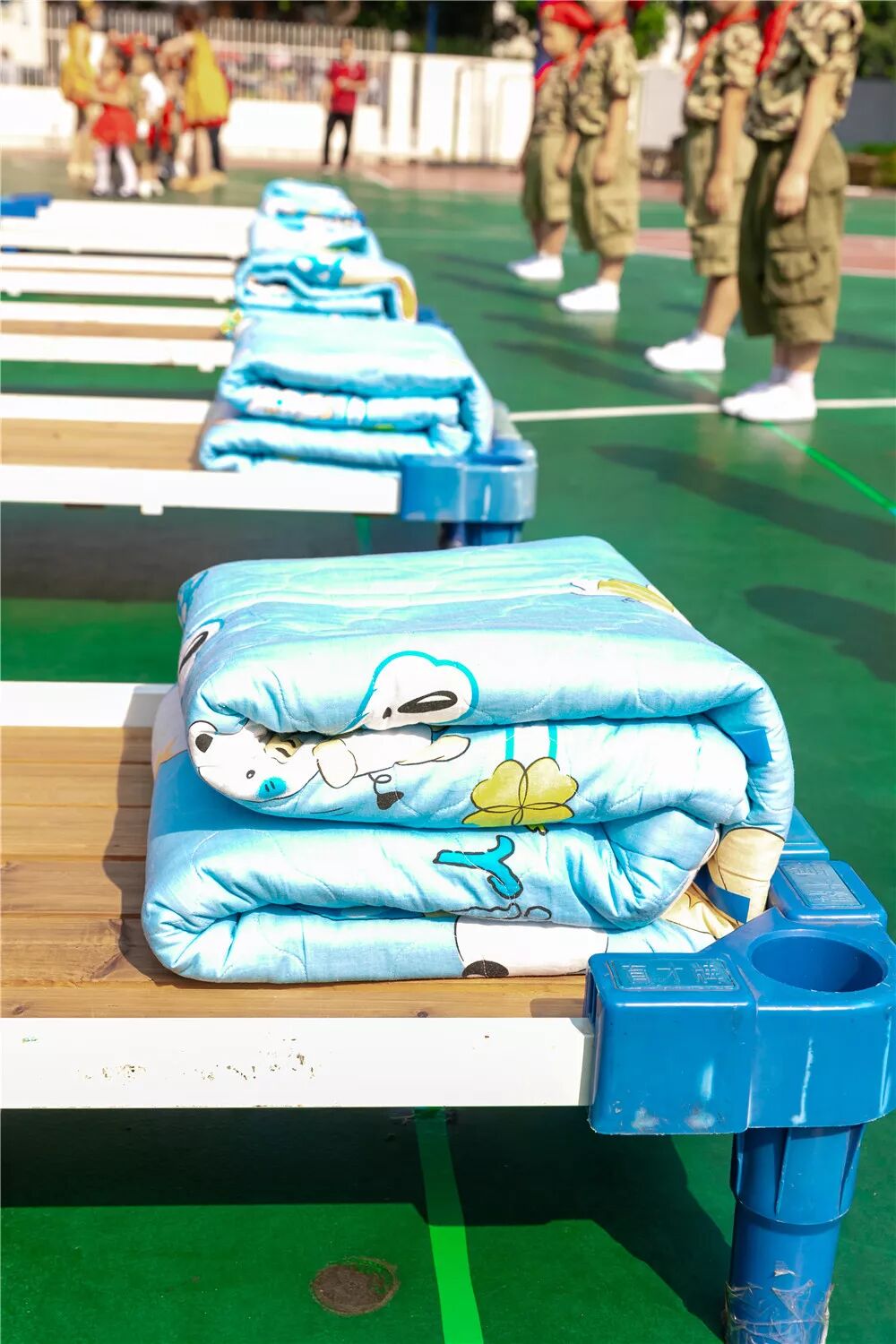 叠被子比赛里的争先恐后引得大家齐声加油。