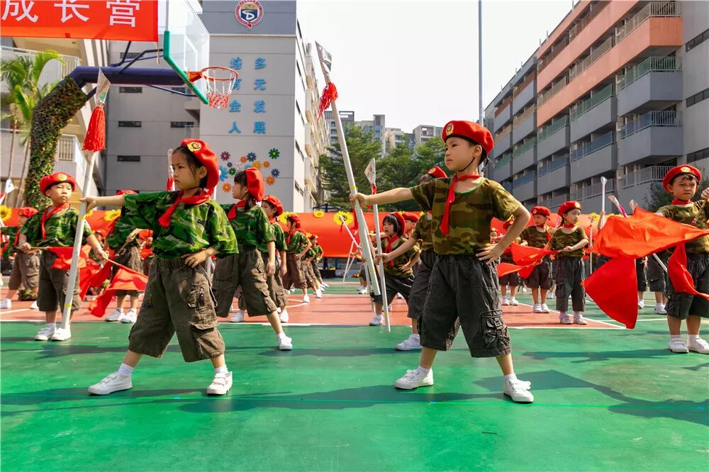 短短的十天里,孩子们和教官,和鲜艳的营旗、班旗朝夕相处。飘动的红旗是小小兵们点燃的热情,坚毅的眼神是他们的无形的成长,挺拔的身姿是他们的蜕变!