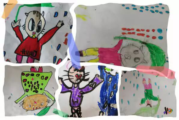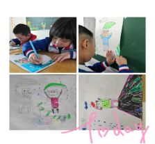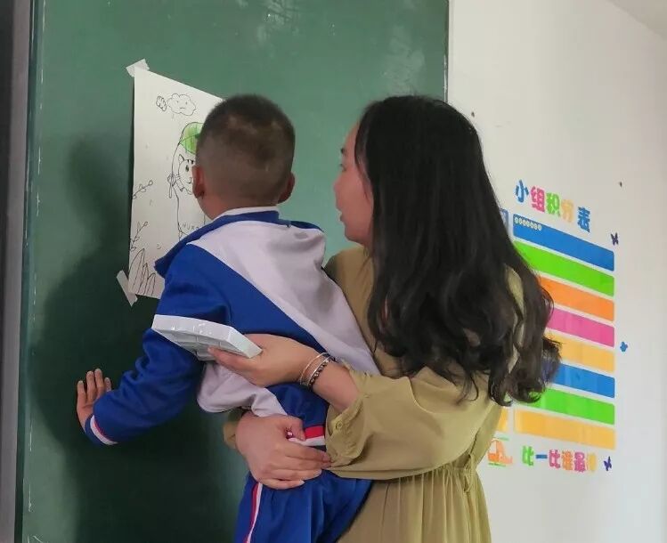 看,我们的老师在干嘛呢!原来是在帮助小朋友们画小猫咪呀!老师您真好!