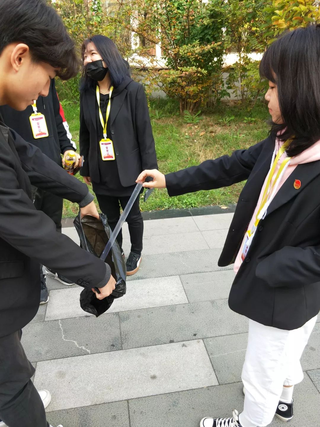 今天是第一天,各个时间段需要上岗的同学们早早到达检查岗位,学生会团总支书记杨红亮老师带领学生会主席齐婷婷到检查区域检查工作情况。同学们尽职尽责,检查并督促公共区域卫生;检查同学们的上课迟到、早退以及旷课情况;在校园内的不文明吸烟情况;过量酗酒、衣着恶俗、言语粗鲁等有失大学生身份的行为。在这次活动中,同学们轮流值班,全时段督查,同时,督查员们都秉承着服务的原则,在看到不好的行为时,及时制止。