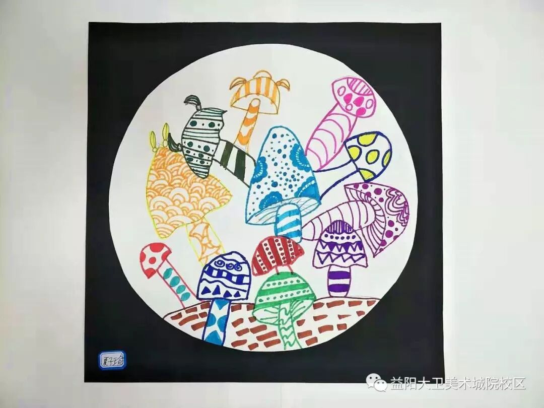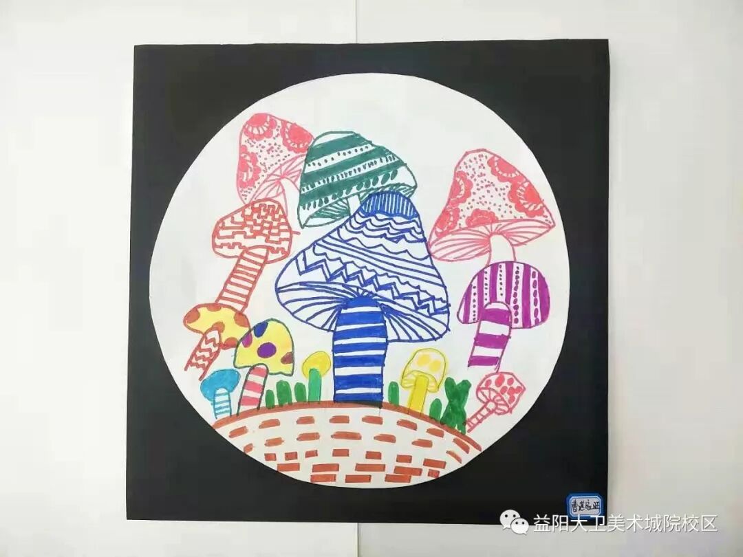 《瞧!一堆蘑菇》通过知识点动画视频学习线条的大小规律排列和同类色的配色方法。线条有疏密变化的排列组合与不同类型的线条有规律的排列组合。通过观察图片了解蘑菇的外观特点特征。并对蘑菇进行线条花纹的装饰,以及线条的排列方式。