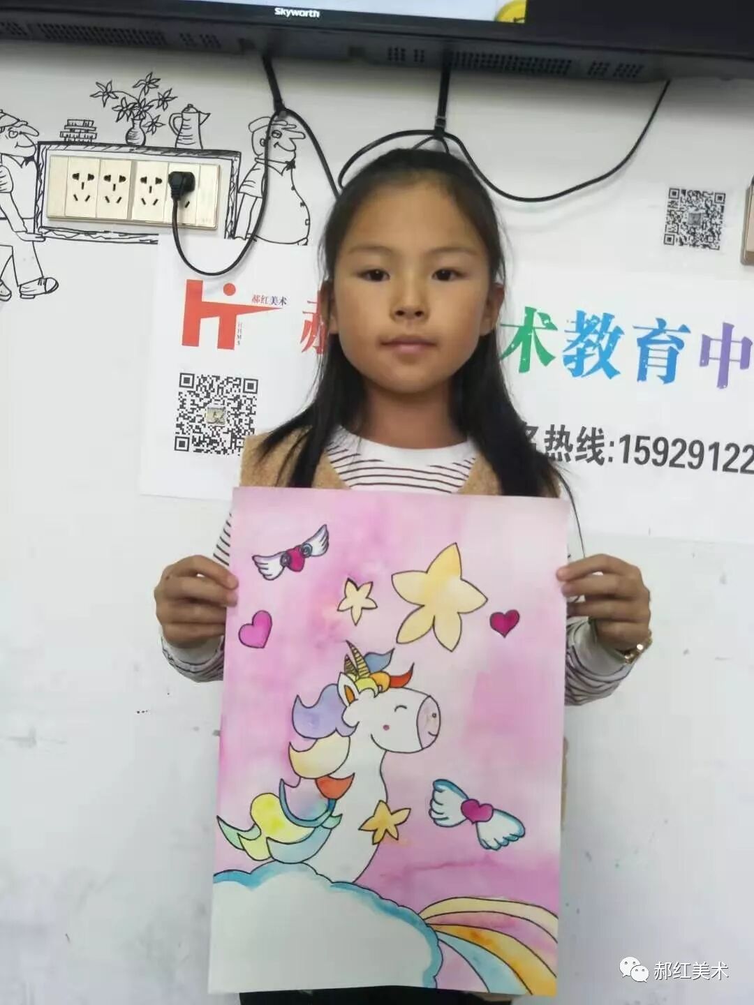 学生们对颜色和形体的掌控能力相比一个月前真的是有了明显的进步,彩铅班的孩子可以在画面上画的均匀,能够用纸巾把颜色擦的有层次感;水彩班的孩子对用水、用颜料也有了基础的了解。