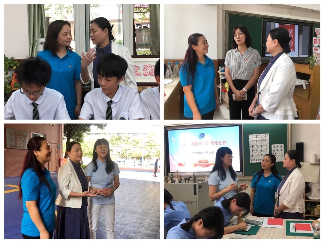 伍教授给予基地学校指导意见10月21日,荔湾区艺教结合美术项目组与荔湾区青少年宫党支部邀请了广东省美术教育协会伍了梵教授出席活动,与荔湾区青少年宫党支部书记、主任喻晓伶,荔湾区青少年宫副主任、区少先队总辅导员张翼凤,荔湾区青少年宫副主任王伟健,荔湾区艺教结合美术项目总指导林少芳部长及艺教结合美术项目教师团队的老师们一同对基地学校进行了指导和调研工作。在中共广州市真光中学委员会岭南支部书记魏剑同志、美术基地指导教师杨琼的热情接待下,专家到校指导工作顺利展开。