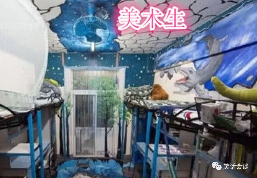 美术生,这个就比较厉害了,美术生都是大神,想法非常多,当然宿舍就是可以随便发挥的地方,总能给人带来惊喜,让人不太敢相信这些竟然都是画上去的,这个真的是被惊艳到了。