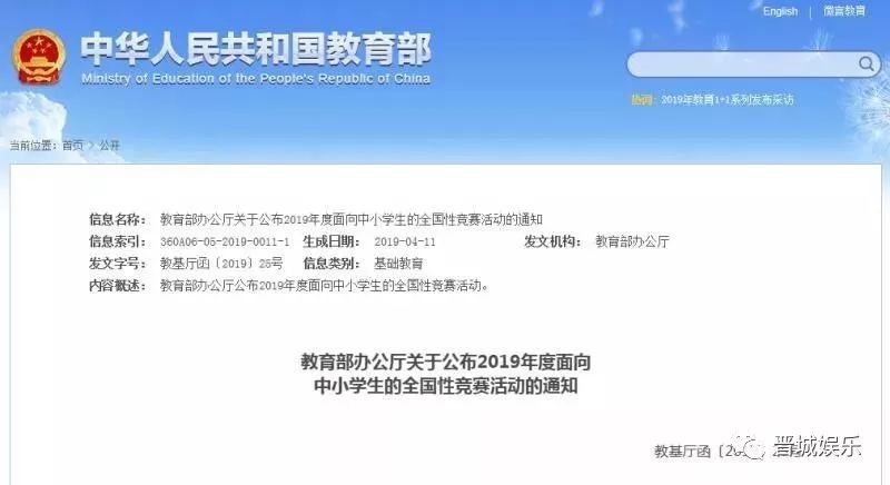 《教育部办公厅关于公布2019年度面向中小学生的全国性竞赛活动的通知》